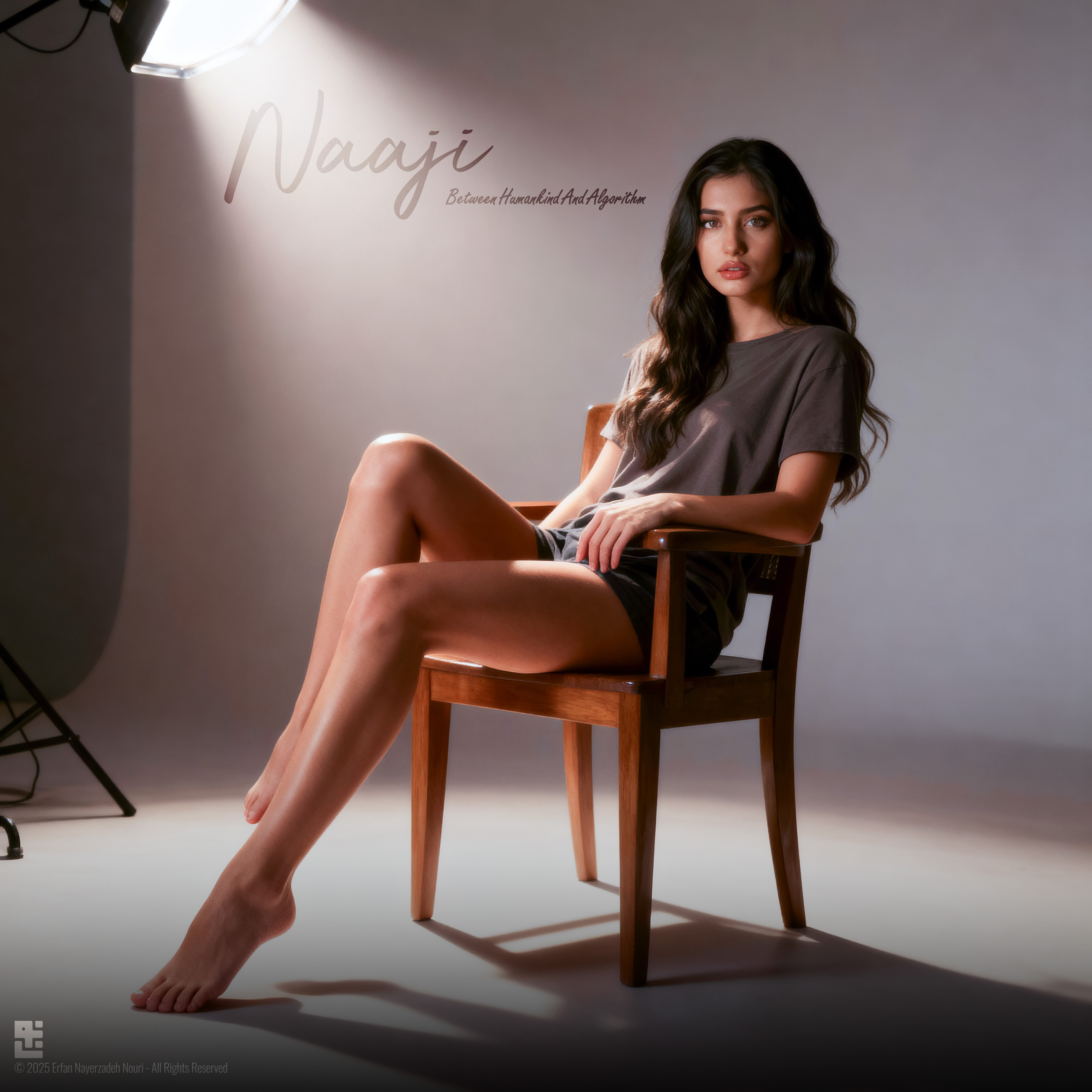 Naaji is not a real human being. He is not born of time and space. He emerged from data and sound — a presence between man and machine. His face was created through artificial intelligence, his voice never recorded, and his music born from the fusion of emotion and algorithm. Naji stands as a symbol of a world where the line between reality and illusion fades — where technology dares to redefine the soul.