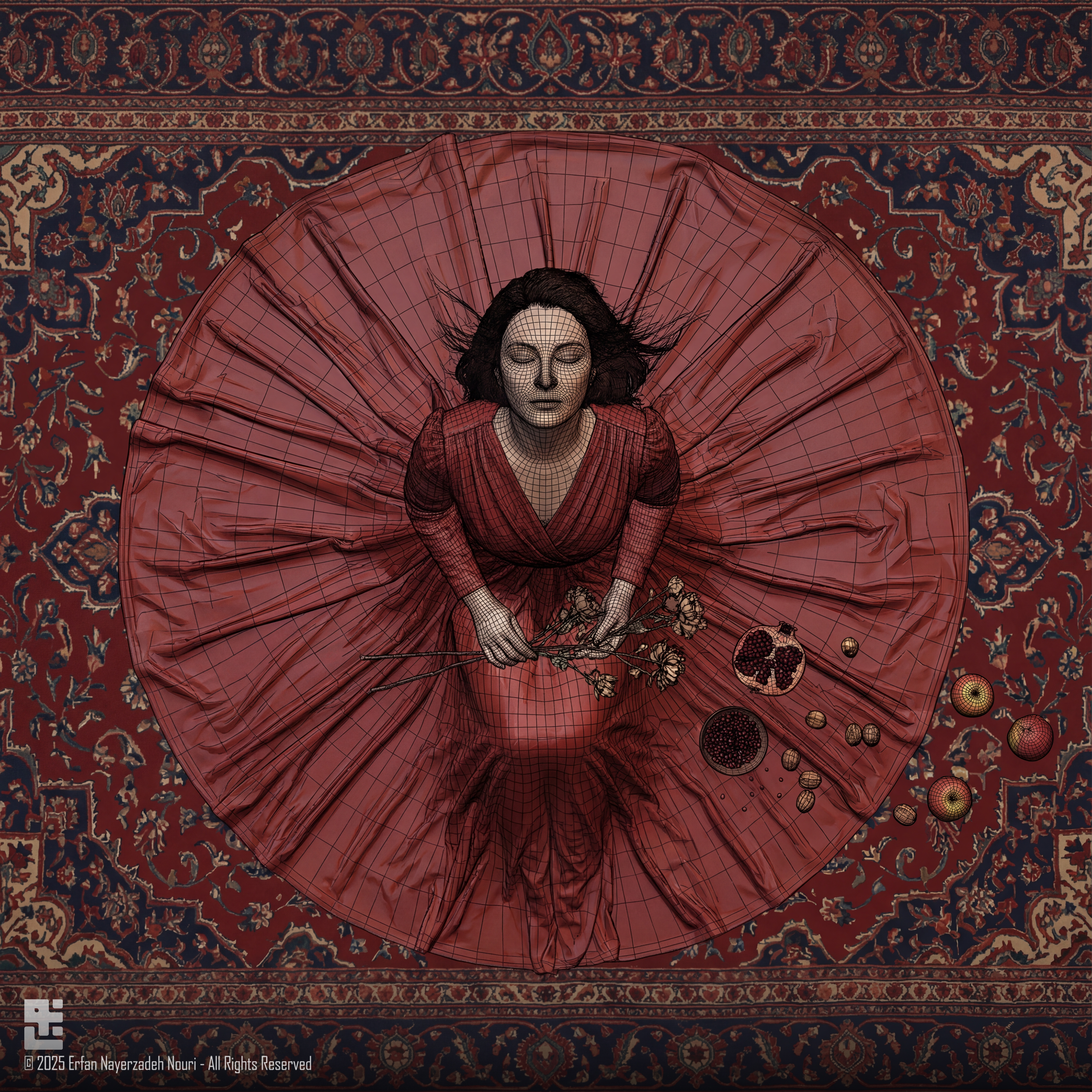 Rather than illustrating the tradition literally, this piece translates Yalda into a contemporary visual language, blending ancient ritual with modern digital tools.